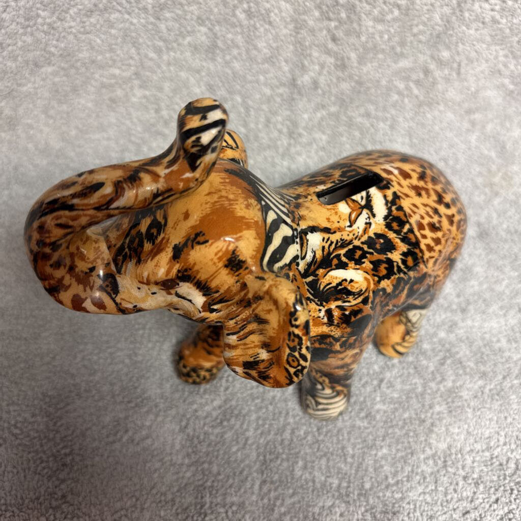 safari collection; ceramic elephant; high glaze; looks decoupaged in various animal prints