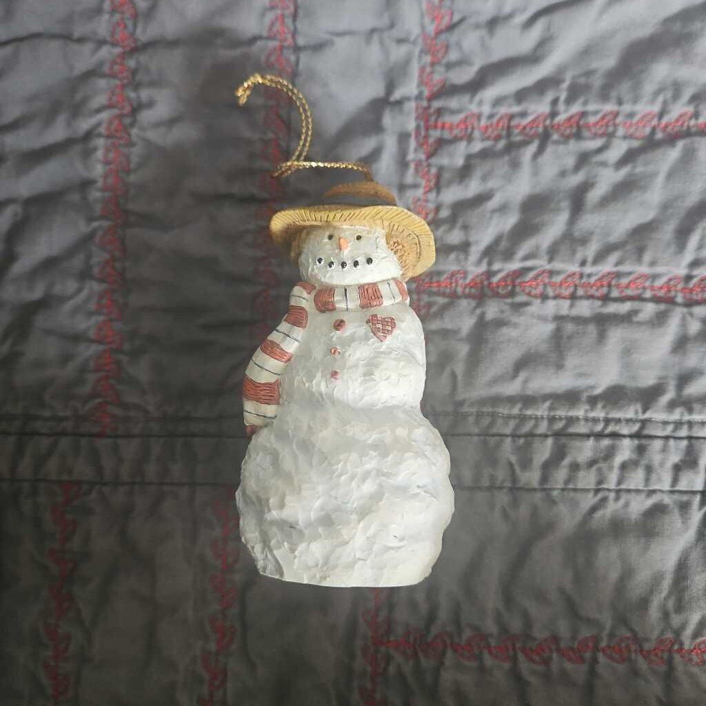 Ceramic snowman in box. Collectible, in box. Featuring the art of Sherri Buck Baldwin, 1998.
