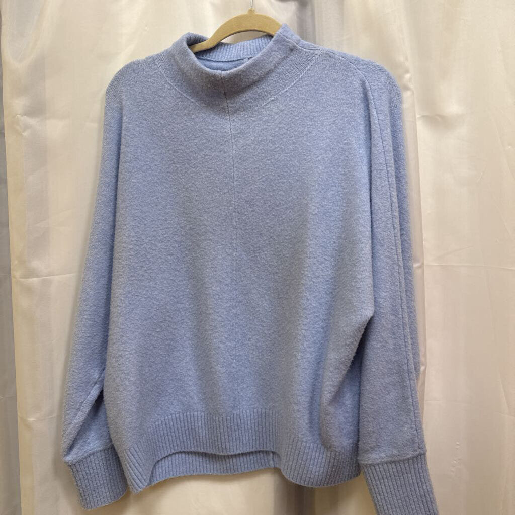 Long batwing sleeve pull over boxy knitted sweater with mock neckline.