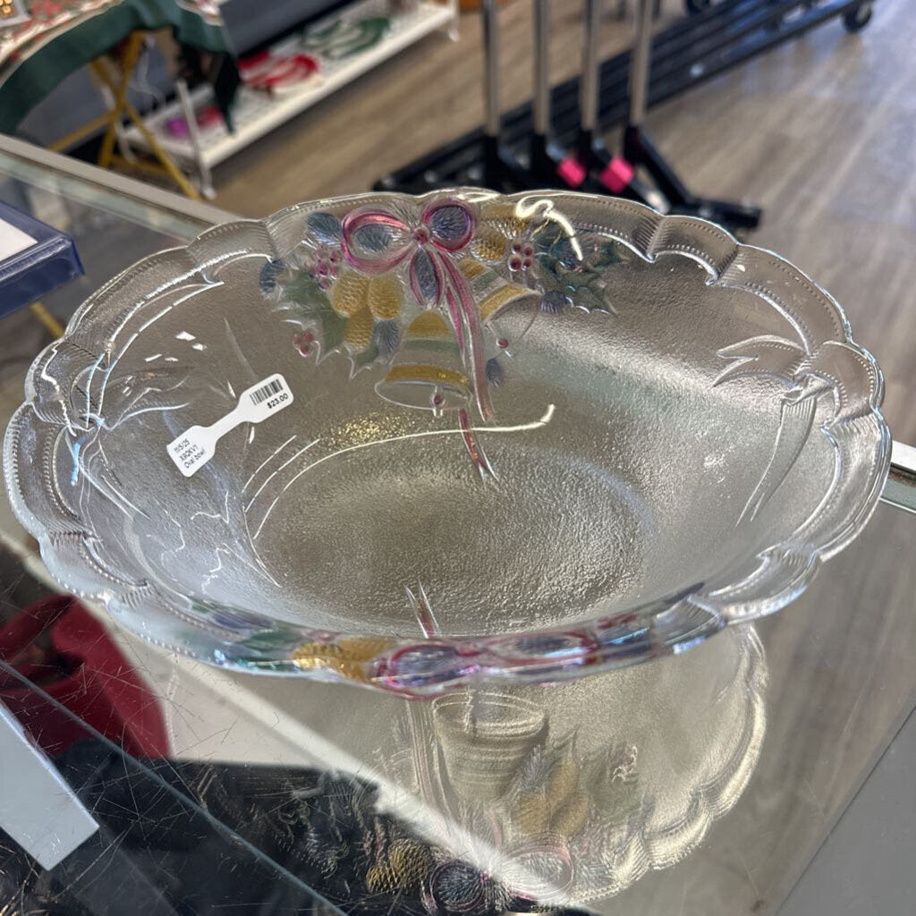 Clear oval with bell, ribbons and holly