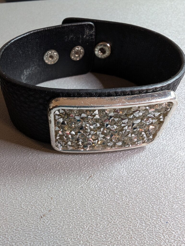 n/a Bracelet Adjustable 1.25" Width Black, Silvertone, Sparkles