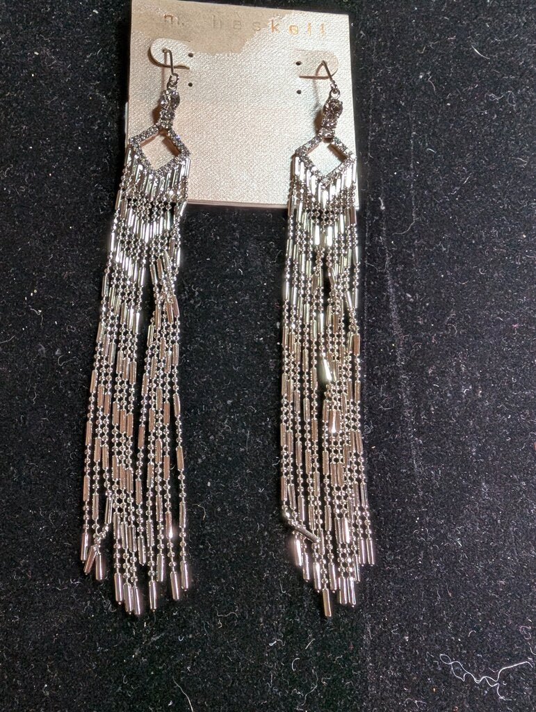 Multi-strand Pierced Earrings On Wire w/Rhinestone Trim
