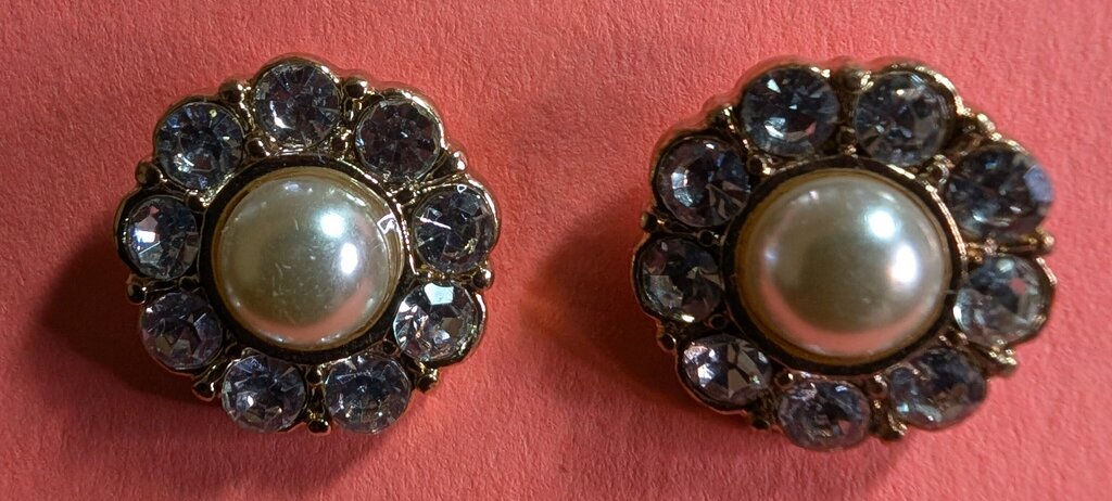 Very Sparkly Circle Pierced Earrings on Post with Pearl Center