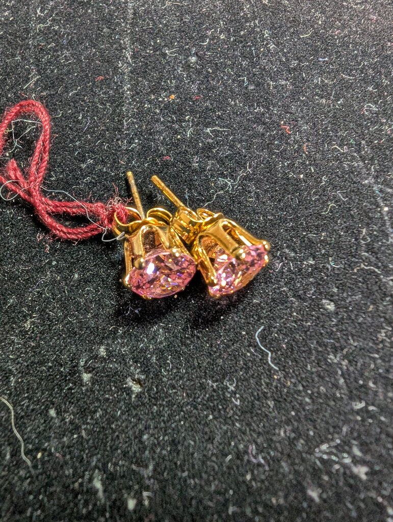 n/a Pierced Earrings 1/4" Gold w/Pink Stone