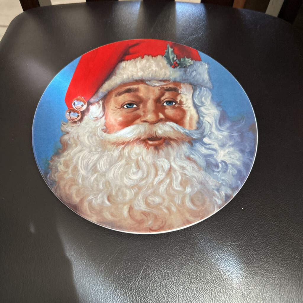 Blue plate with Santa face.