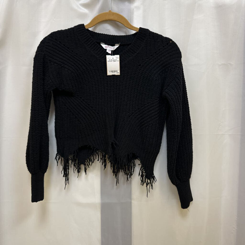 Long sleeve cropped pullover with jagged hem and fringe , wide ribbed