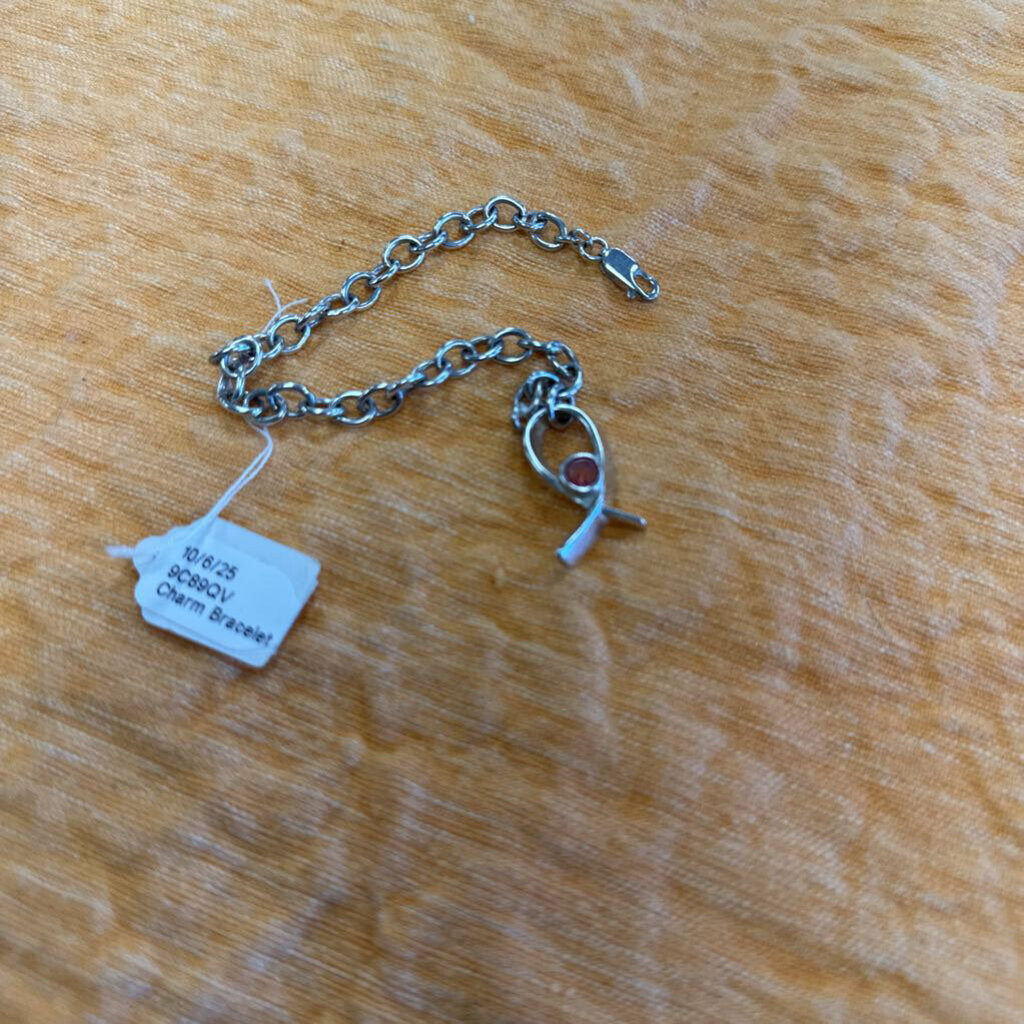 Sterling Silver , has one charm - christian fish symbol with single pink gemstone
