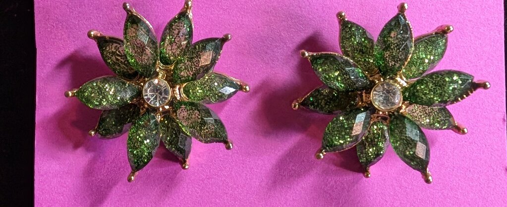 none Pierced Earrings 1" Across Green