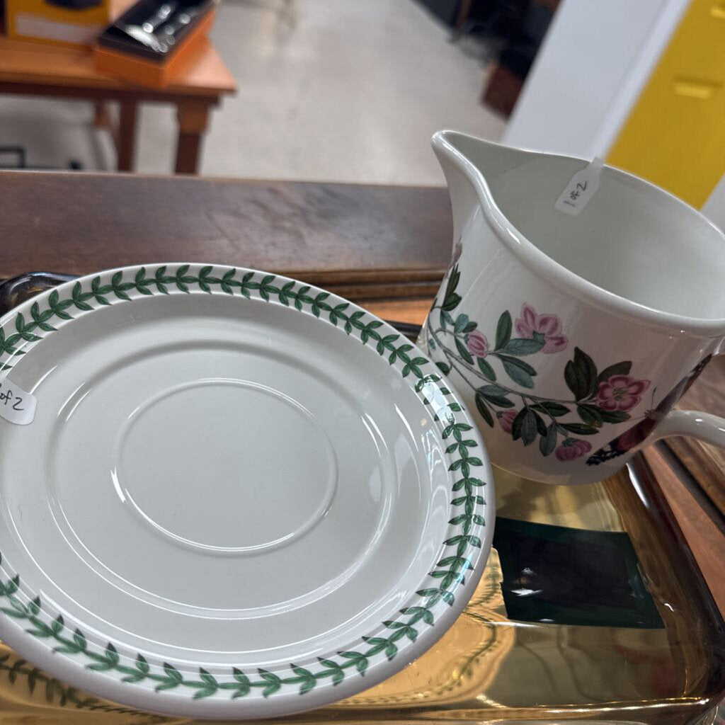 Portmeirion Gravy boat & saucer 2 pc set white multi