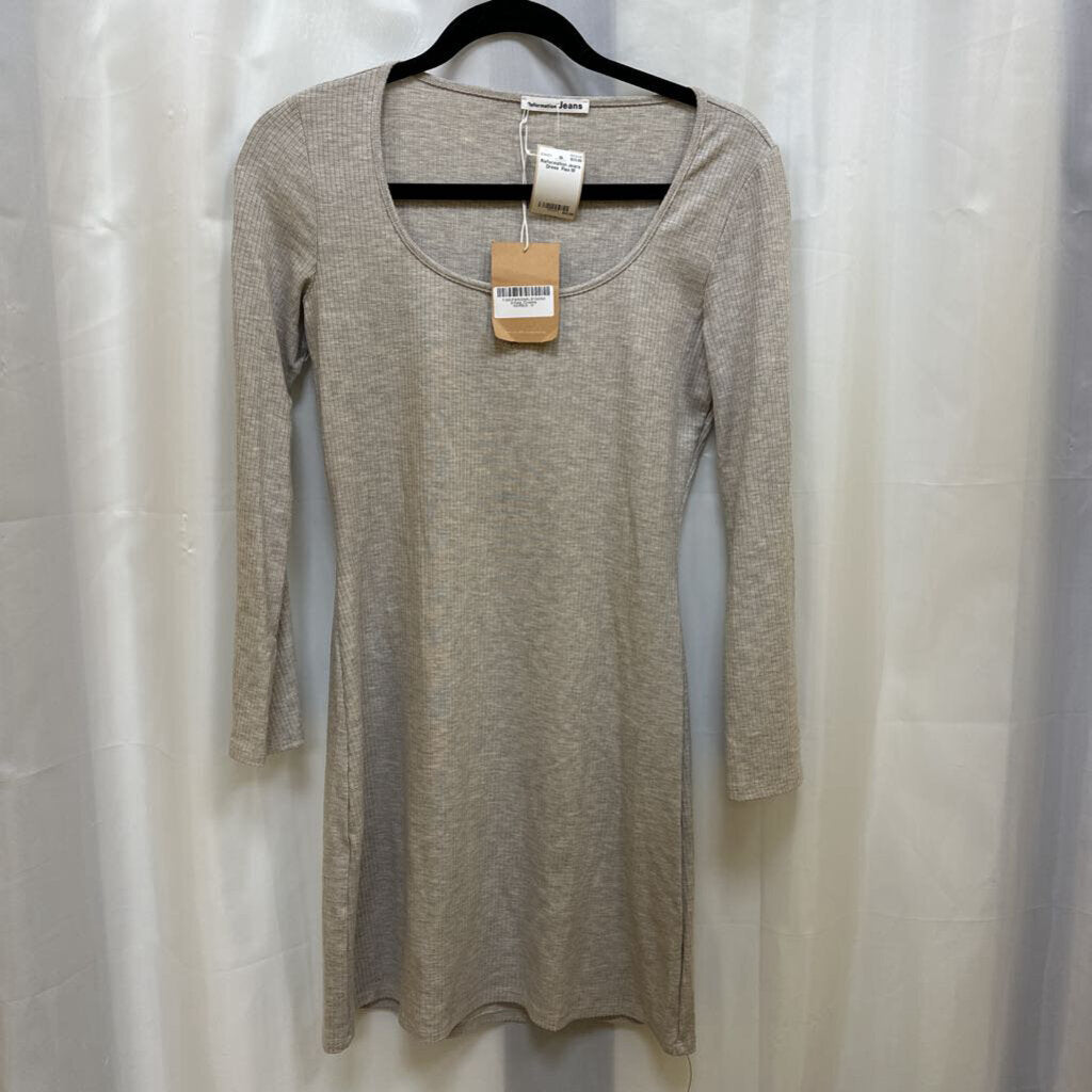 Long sleeve rib knit pull over short dress with low scoop neckline, new with tags.