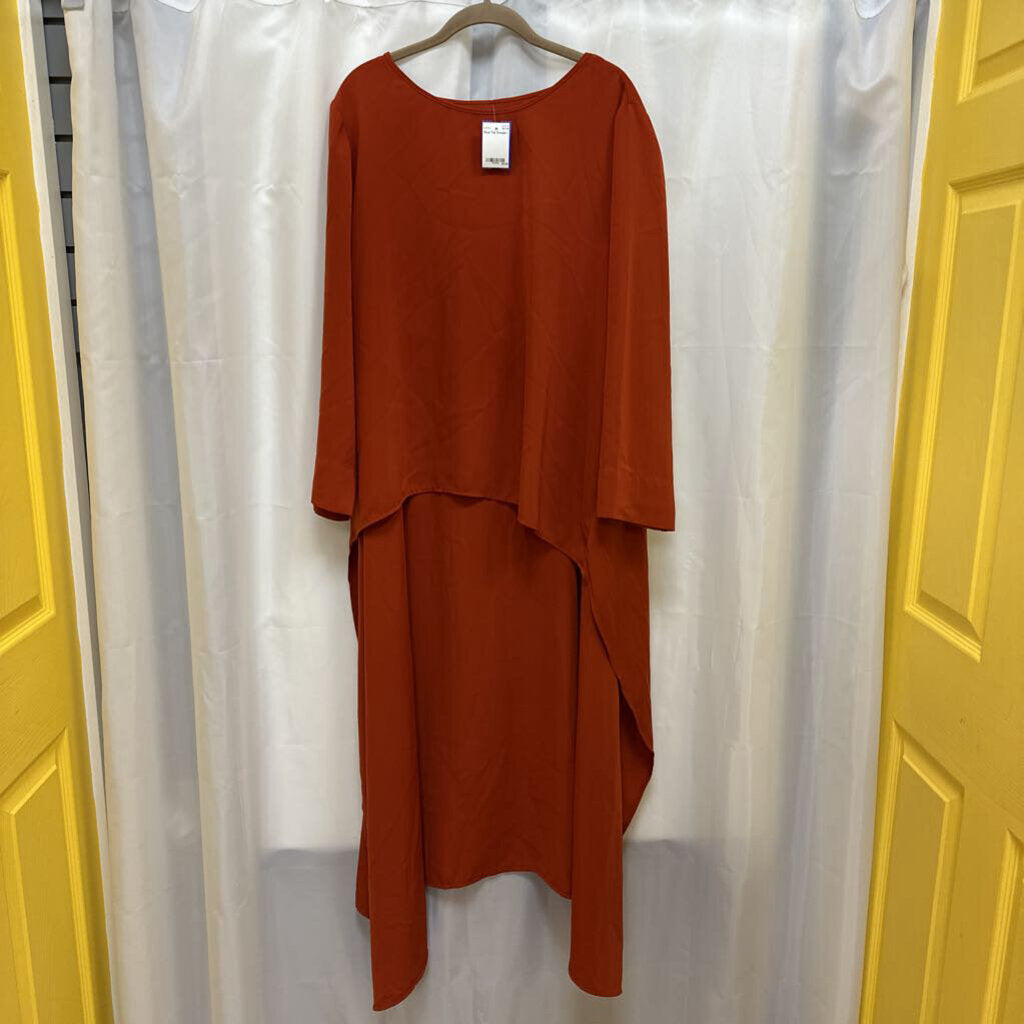 Long sleeve pull over woven top with high low hemline, very boxy.