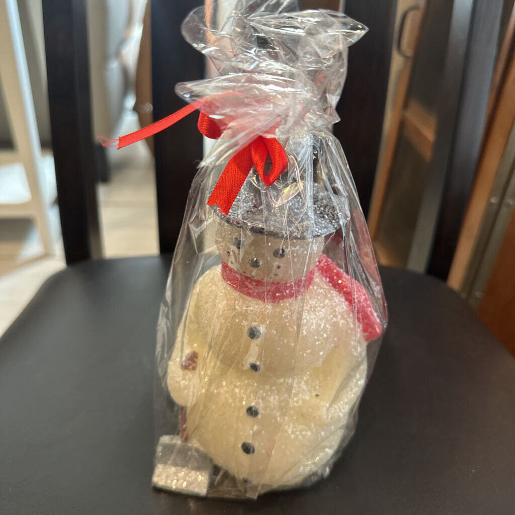 Snowman Candle 8”t White multi
