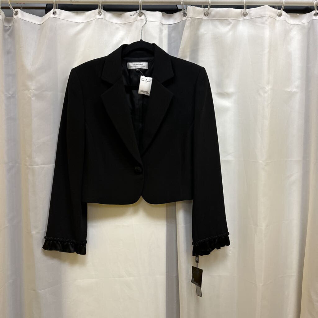 Long sleeve cropped jacket with beaded button and sleeve cuffs, new with tags.