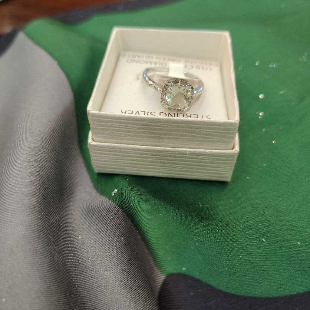 Sterling silver 1/10 ct.TW diamond with genuine green quartz.