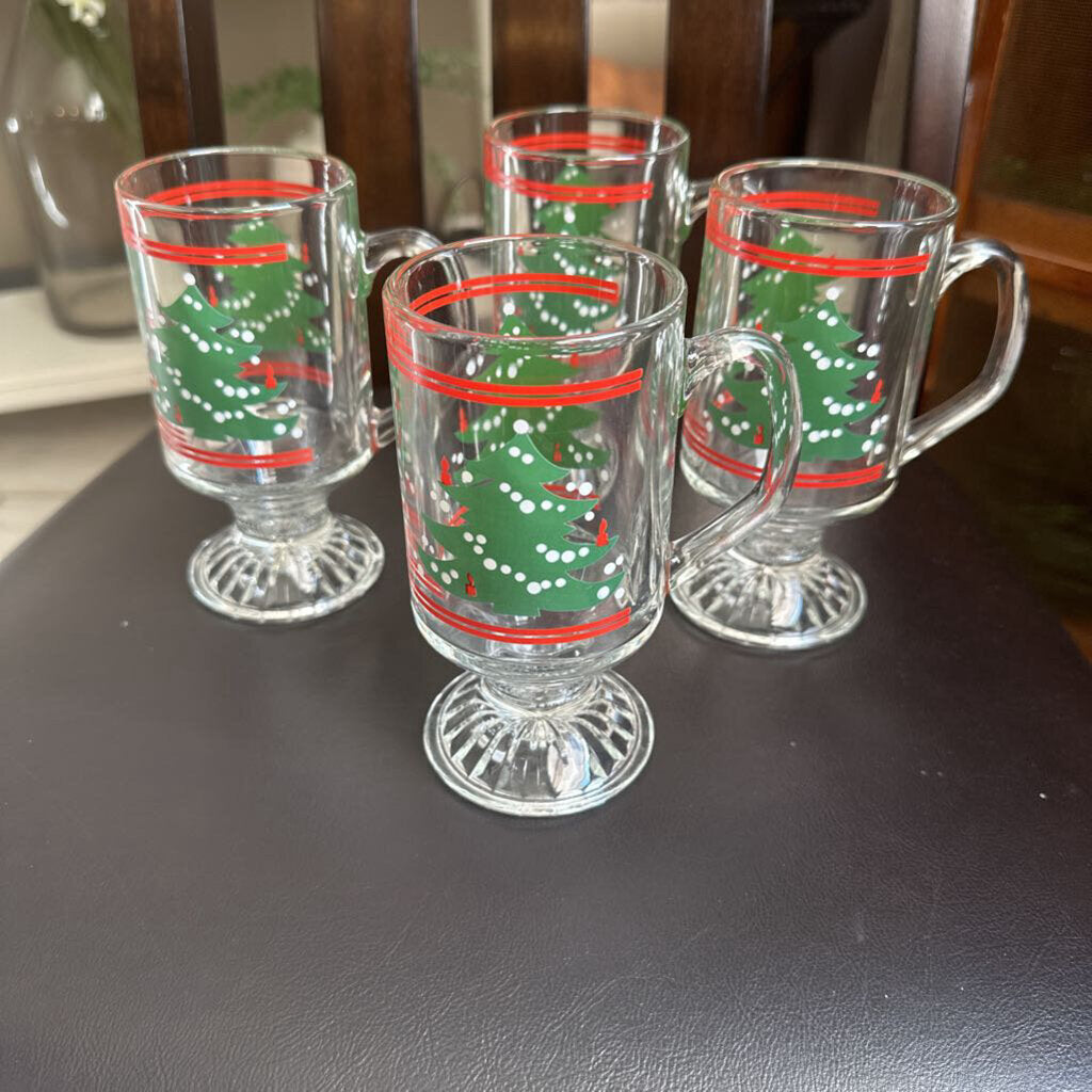 Clear mug with Christmas trees with red candles. Set of 2 + 1
