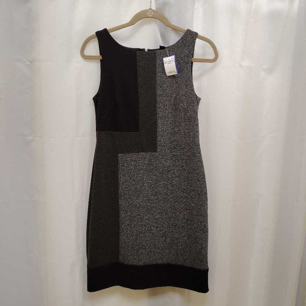 Sleeveless color blocked short sheath dress with Bateau neckline.