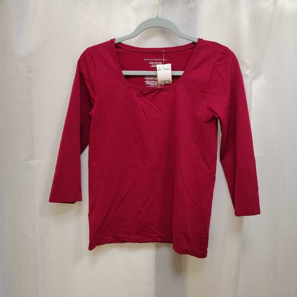 Elbow length sleeve pull over knit t- shirt with square neckline.